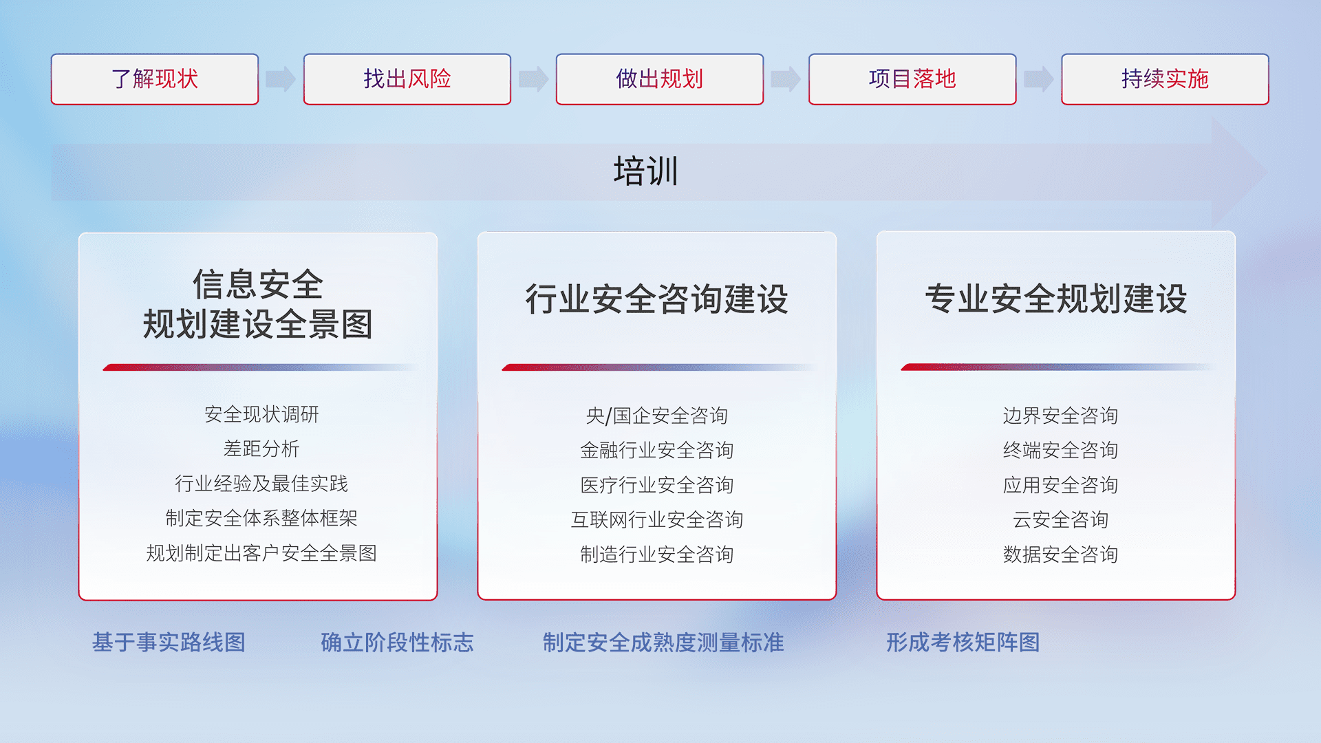 针对客户行业特性,,将宏观的安全战略和需求,,,,通过专业的交付服务,,,,实现项目落地,,为客户提供标准规范的集成交付服务。。。